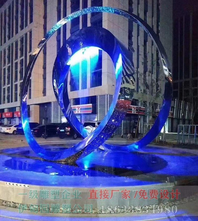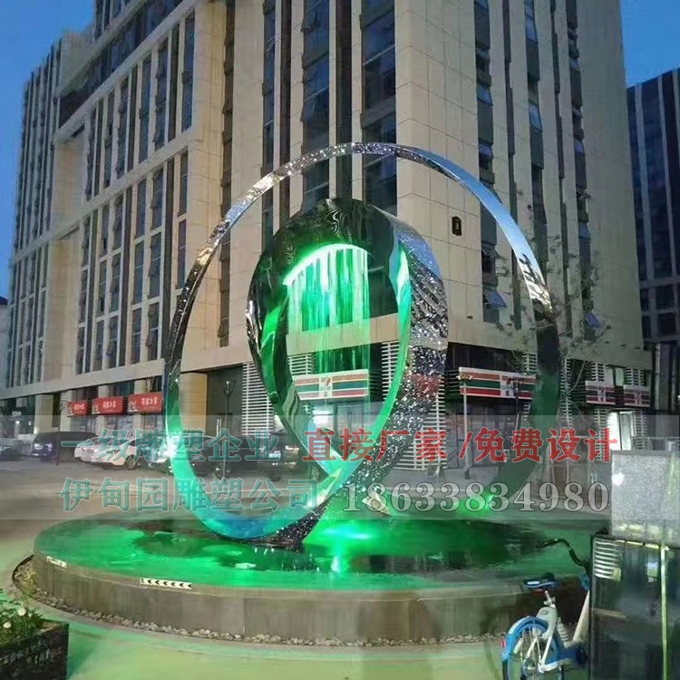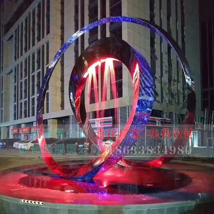 水景圓環(huán)雕塑效果圖不銹鋼水景圓環(huán)雕塑整體直徑5米,圓環(huán)內(nèi)山形狀在江西上饒某著名景點取樣,經(jīng)過反復(fù)推敲效果,最終采用三種不同規(guī)格的不銹鋼管拉彎制作,一比一還原效果。由于運輸尺寸受到限制,確定方案分半制作,現(xiàn)場滿焊打磨,組裝成型。水景圓環(huán)雕塑制作不銹鋼水景圓環(huán)雕塑的高壓噴霧系統(tǒng)主機采用高壓柱塞式泵站加壓,通過高壓管路輸送至微米級霧化噴嘴,瞬間產(chǎn)生的大量細(xì)微水霧粒子在短時間內(nèi)迅速達到濃濃的飄渺白霧,如同山中自然云霧,同時兼具除塵、凈化加濕空氣功能。水景圓環(huán)雕塑噴霧不銹鋼發(fā)光雕塑燈帶角度大且均勻、無陰影、高亮度、低電壓供電,安全穩(wěn)定,能在惡劣的環(huán)境下良好工作,水景圓環(huán)雕塑可達到整體七彩漸變跳變的效果,可以根據(jù)控制器實現(xiàn)各種顏色統(tǒng)一變化,廣泛應(yīng)用于不銹鋼雕塑、標(biāo)識及舞臺等。水景圓環(huán)雕塑發(fā)光不銹鋼水景圓環(huán)雕塑內(nèi)置霧噴系統(tǒng)及七彩LED燈帶發(fā)光,完美演繹時光廣場,意境十足:水景點綴,圓環(huán)望月,穿越時光;