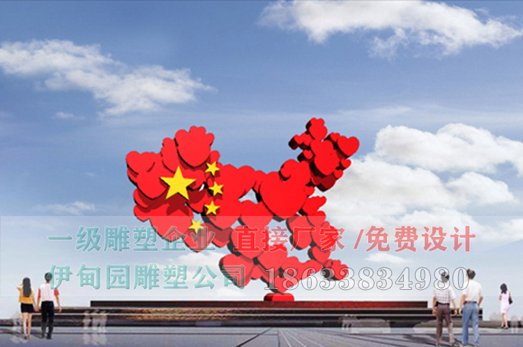不銹鋼雕塑表面噴中國紅色汽車漆,象征中國人民熱情團(tuán)結(jié)、蒸騰向上。