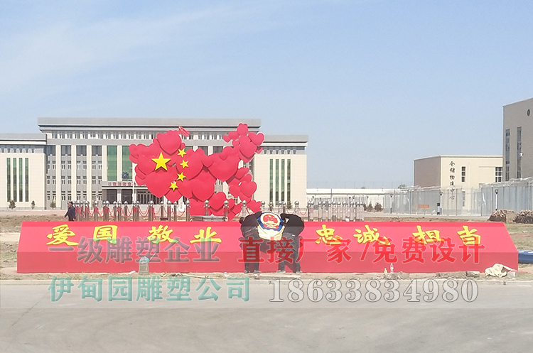 紅色黨建文化雕塑取名《團(tuán)結(jié)》,雕塑由56顆紅心拼接組成,尺寸:長9.6米,高7米,安裝地點:吉林省某監(jiān)獄。雕塑整體象征中華民族團(tuán)結(jié)一心,共筑中國夢的精神。