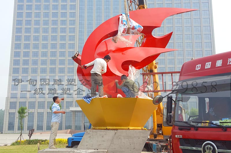 不銹鋼火焰雕塑,安裝于甘肅省蘭州市某企業(yè)內(nèi)?;鹧娲碇馃岷蜔崆?,不銹鋼火焰雕塑看上去是那么的熱情,那么的宏偉,非常適合安裝在企業(yè)、城市、校園里,尤其是紅色大型火焰雕塑,可以作為標(biāo)志性雕塑。