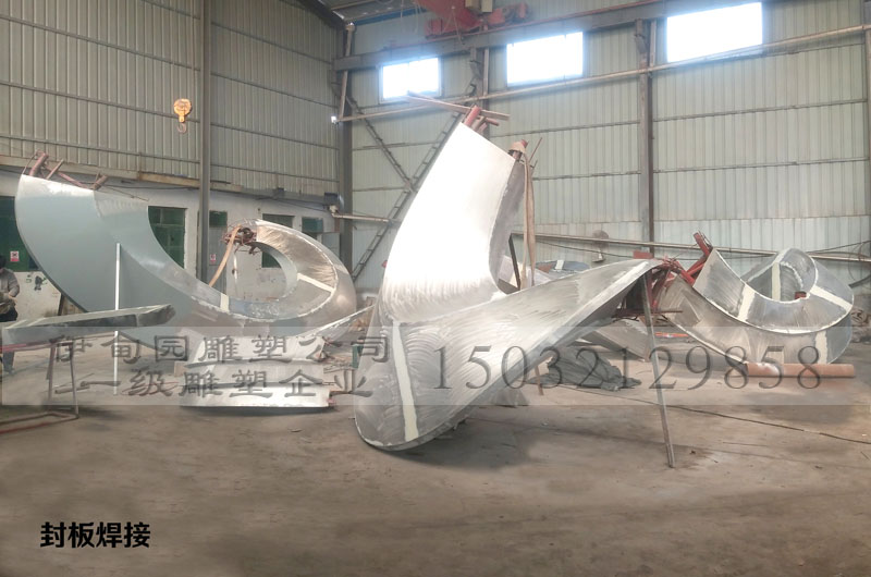 普通的直線造型用裁板機就可以完成了,但是很過雕塑造型并不是由簡單的直線組合而成,遇到有弧形的雕塑,需要用等離子切割機來完成,用等離子切割的不銹鋼板材切割表面整齊光滑、不變形,使不銹鋼雕塑在拋光后更美觀。