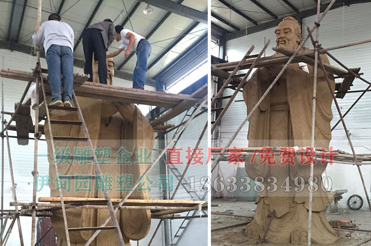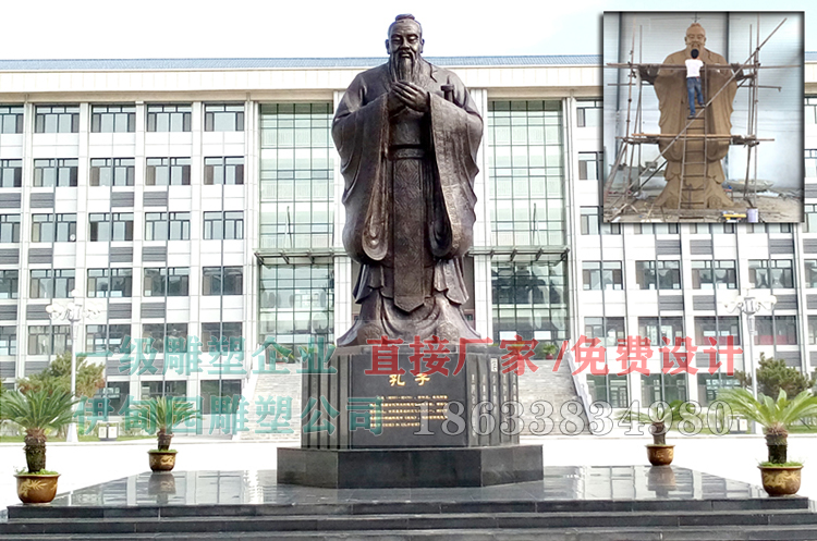 高8.8米孔子銅像雕塑安裝于吉林省某校園內(nèi),孔子銅像制作流程:確認(rèn)雕塑圖案一塑制泥塑模型一翻制模具(硅膠模具)一根據(jù)雕塑模型采取精鑄一翻制一烤制型殼脫蠟一燒制型殼一澆鑄銅水一待銅水冷卻后打碎型殼完成銅品制作一著色、防腐處理一客戶驗(yàn)收。